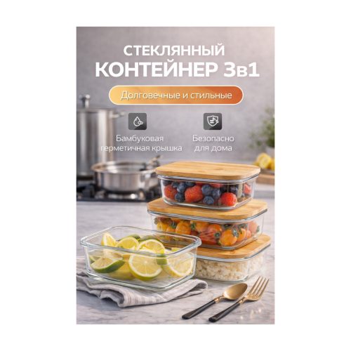 Стеклянный контейнер 3в1